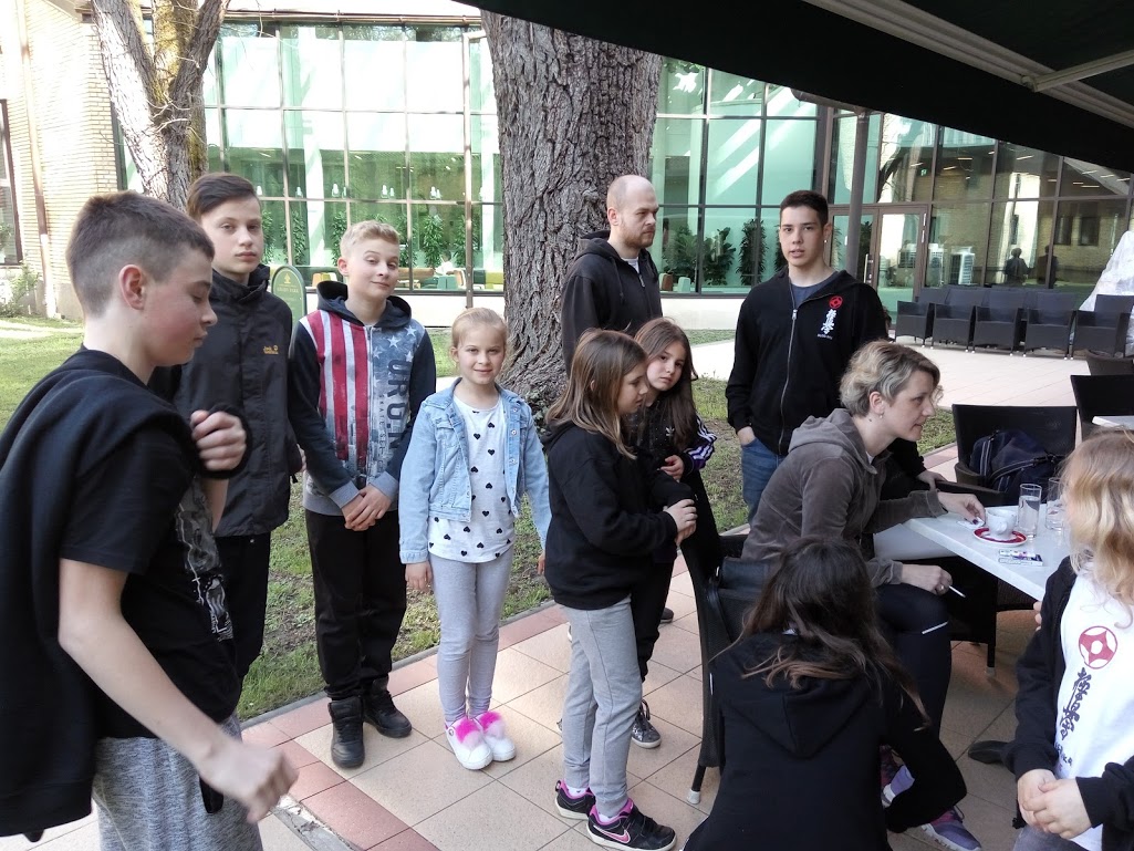 Nakon treninga uslijedila je zaslužena pauza i ukusan ručak u hotelu Daruvarskih toplica. Prije početka drugog treninga prošetali smo centrom grada i neko vrijeme proveli u obližnjem parkiću kraj rijeke Toplice. Drugi trening započinje u 14 sati i traje do 15 sati i 45 minuta. Cilj ovog treninga bilo je stapanje borbenih tehnika u jednu cjelinu i kretanje unutar borbe.